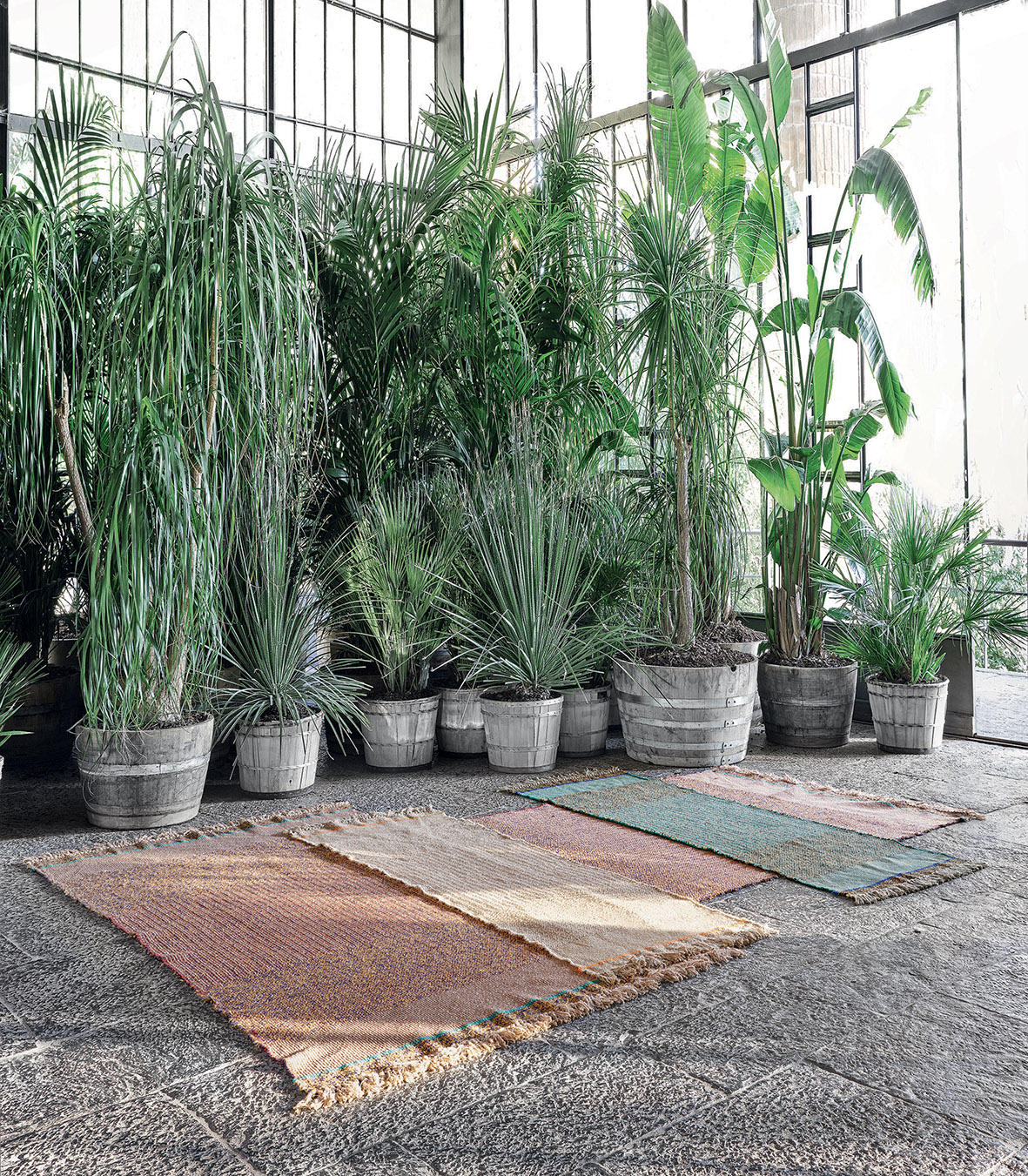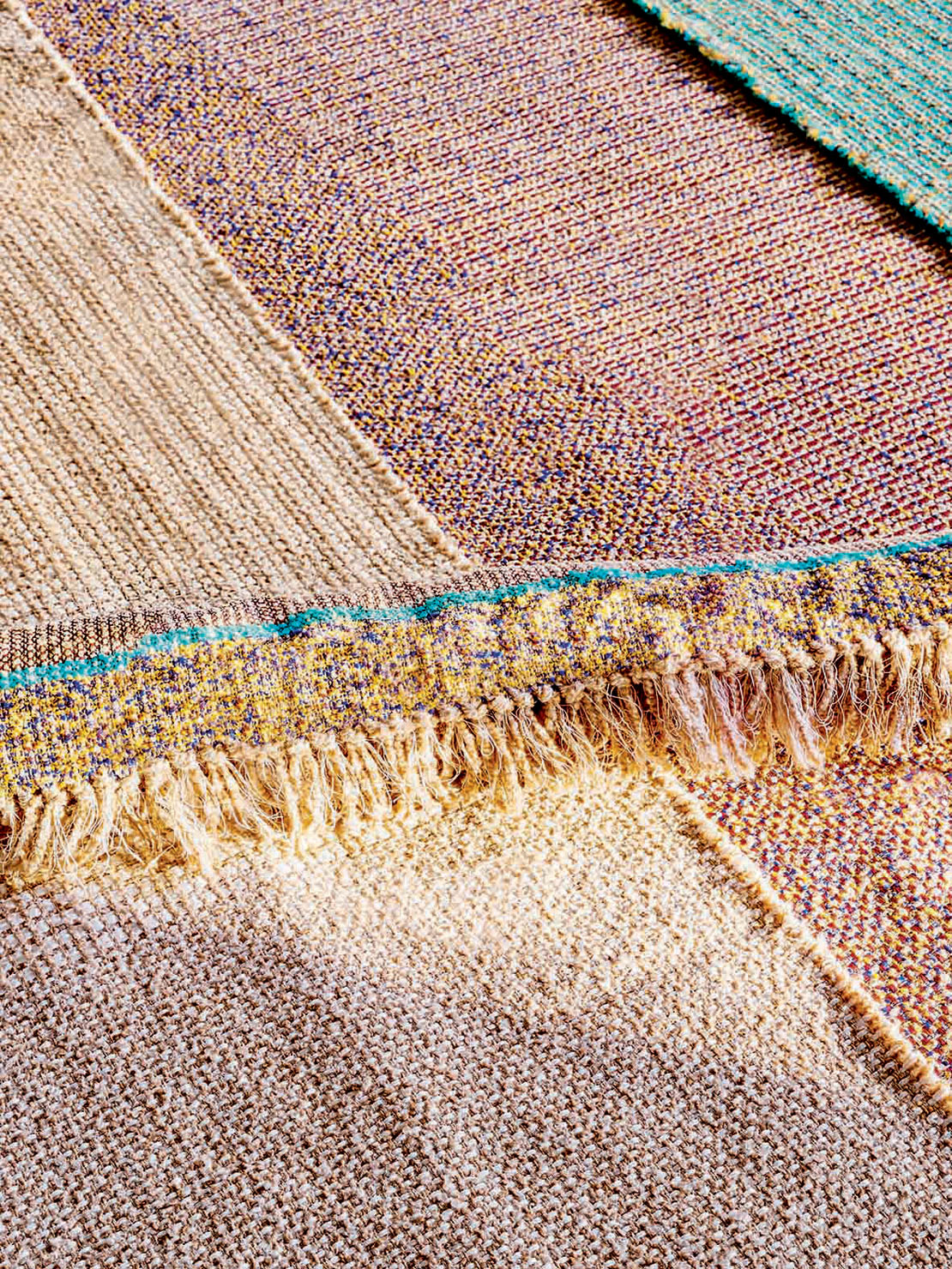그리고 <내추럴 콘트라스트>는 노란색과 블루 부클레와 흙색 멜란지 스트립이 특징입니다. 두 가지 사이즈의 프레쉬하고 가벼워서 이동이 용이한 러그 컬렉션입니다.