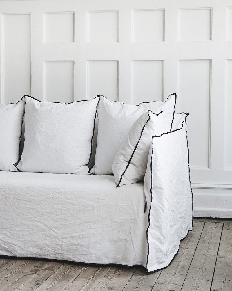 세탁과 교체가 용이한 리무버블 패브릭 커버. 바깥으로 박음질 처리되어 있는 오버록 스티칭 마감 커버.