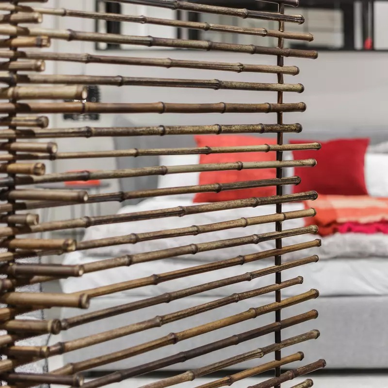 내추럴 블랙 밤부 쓰리 도어 폴딩 파티션.