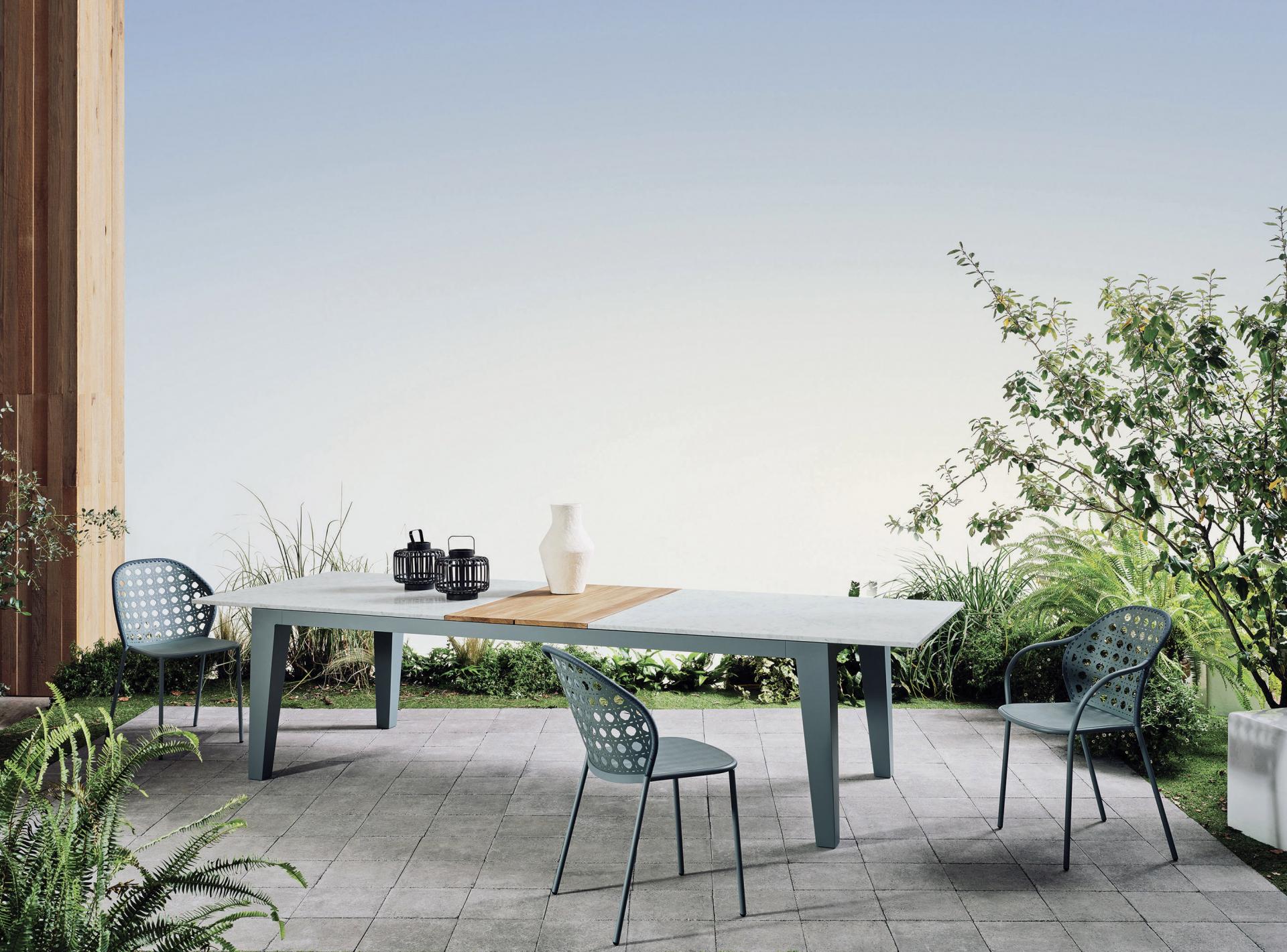 스태킹이 가능한 아웃도어용 암체어, 스테인리스 스틸 프레임, 우드에볼루션 시트/백.