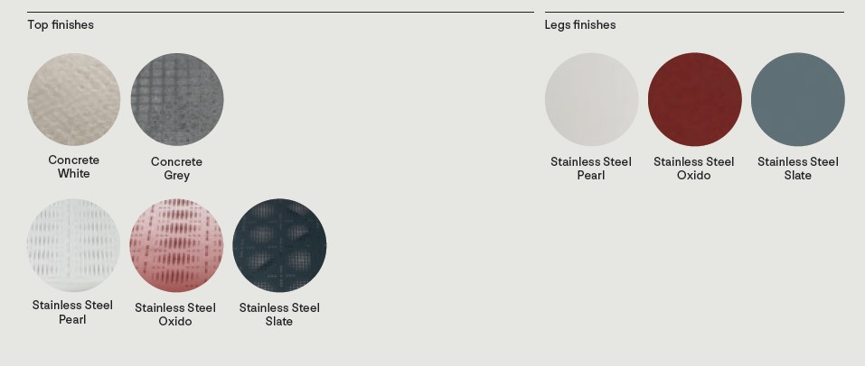 탑 : 콘크리트 (화이트 또는 그레이 데코레이션 콘크리트 옵션) 또는 스테인리스 스틸 (펄, 옥시도, 아가테, 슬레이트 컬러 옵션)