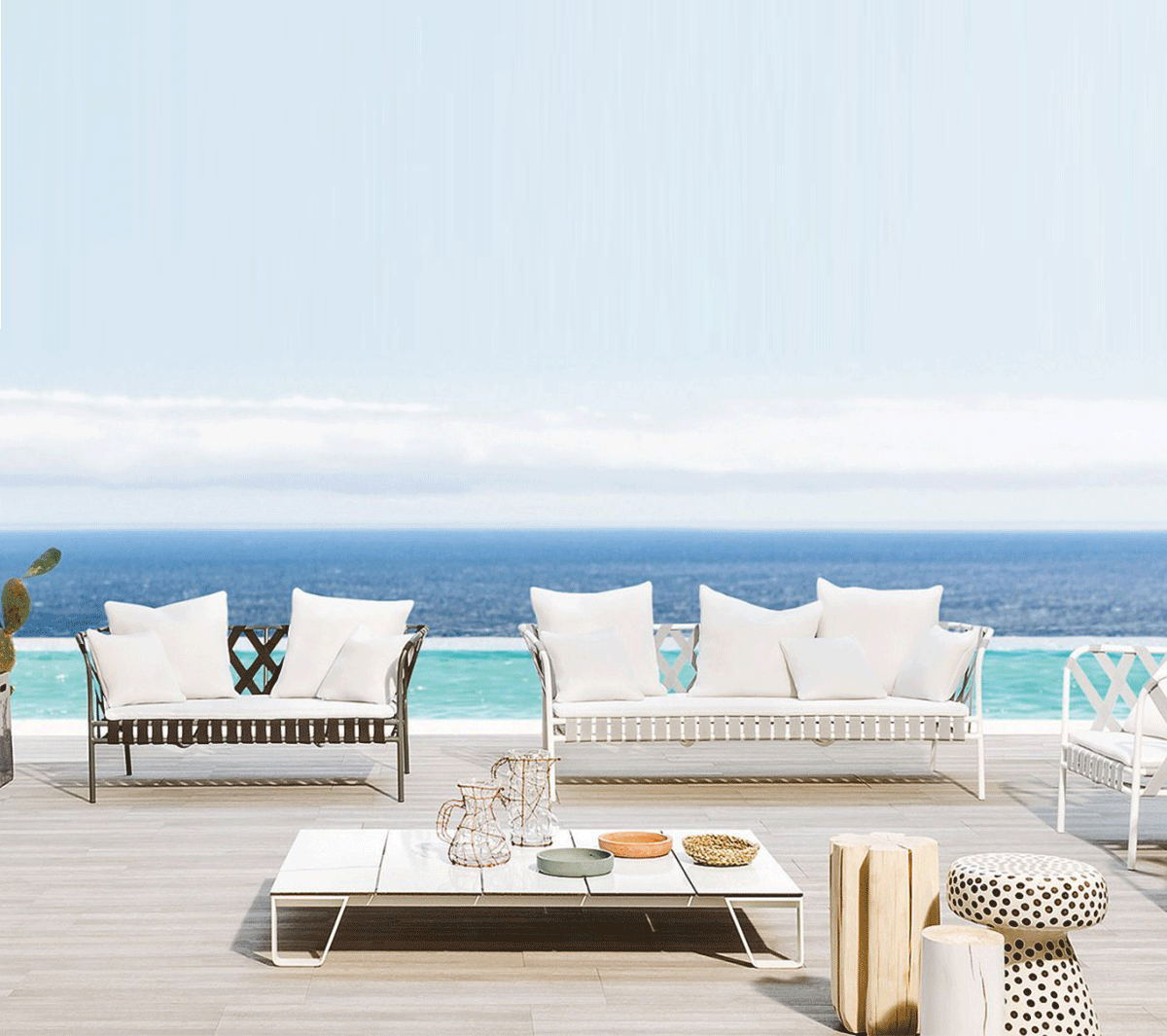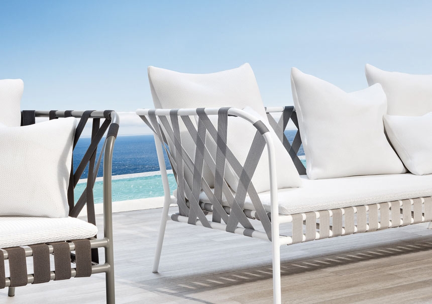 아웃도어 겸용 소파, 엠보싱 도장된 펄, 옥시도, 아가테, 슬레이트 컬러 옵션 알루미늄 튜블러 프레임,