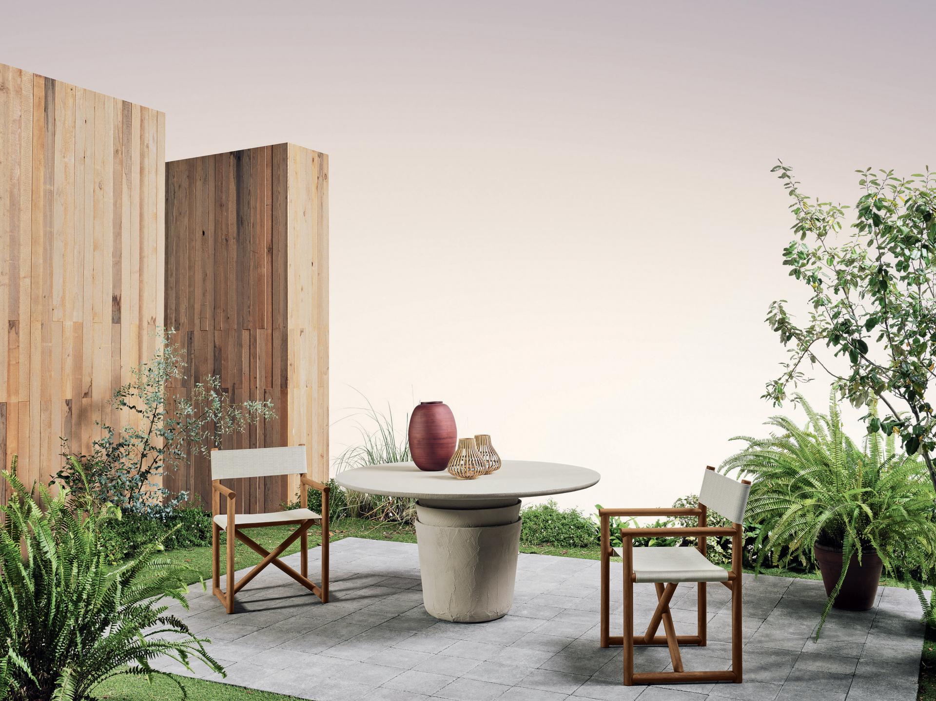 아웃도어 겸용 라운드 테이블, 폴리머 폼 베이스, MDF 탑.