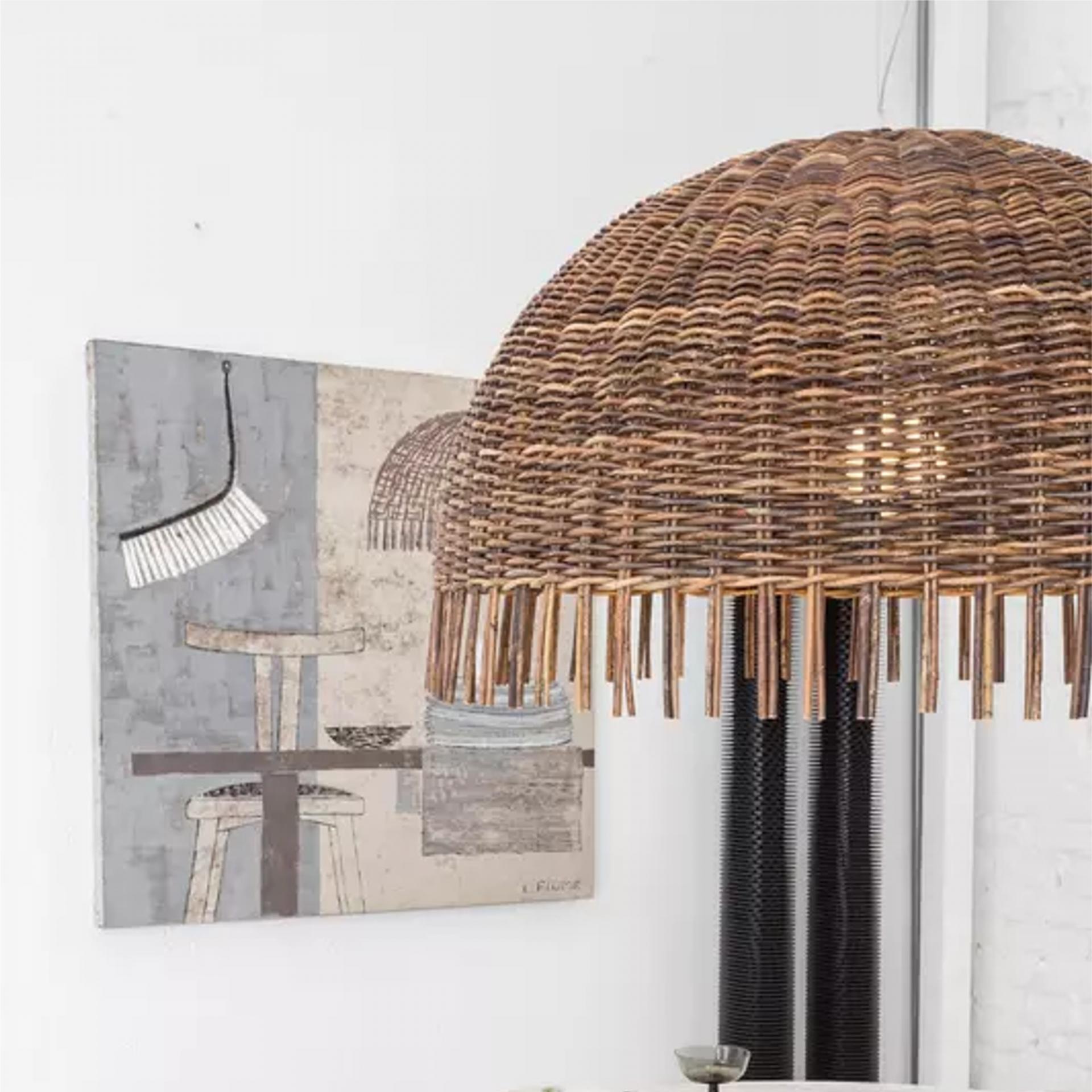 크로코다일 라탄 소재의 핸드 우븐 서스페션 램프 오브제