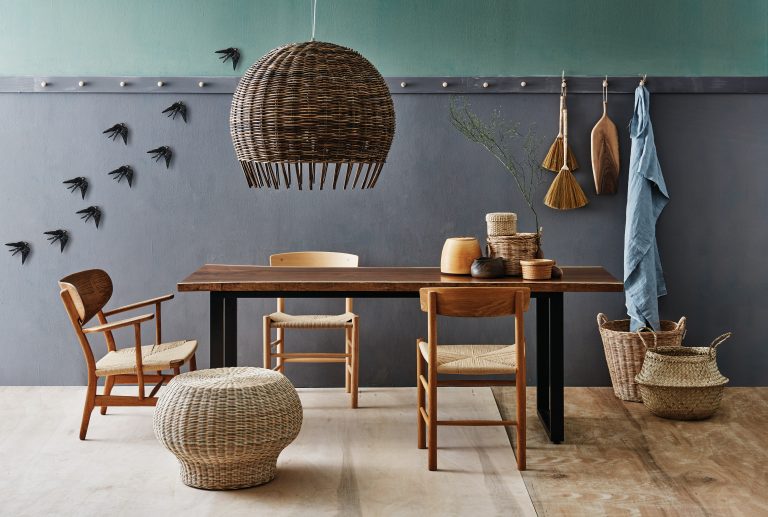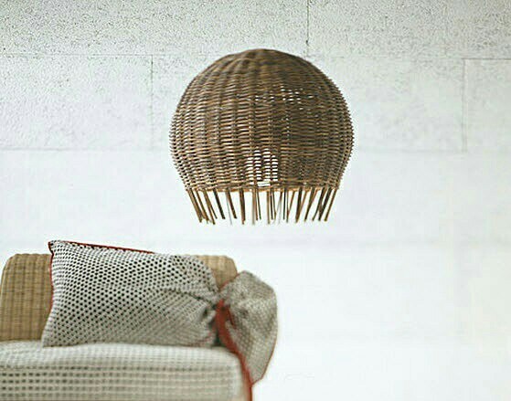 크로코다일 라탄 소재의 핸드 우븐 서스페션 램프 오브제