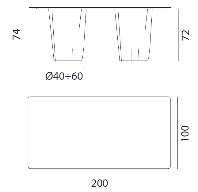 top in waxed iron plate, 200 x 100 cm, thickness 4 mm.