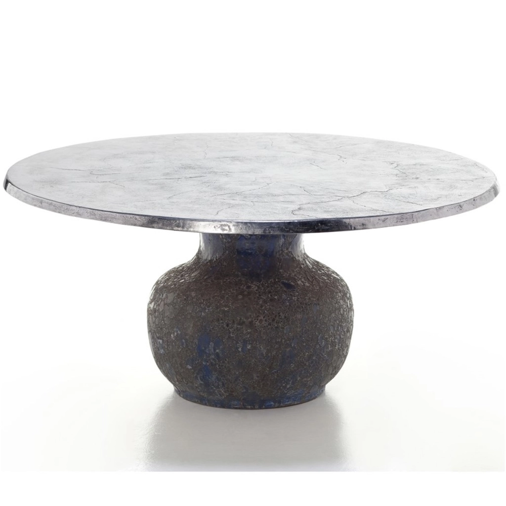 Table, aluminium casting top 35 mm. Central base in blue ceramic.