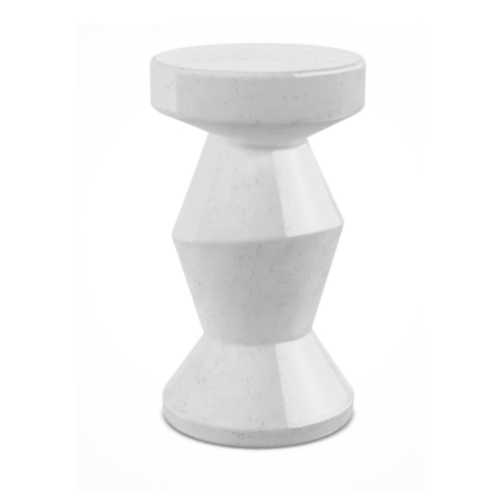라운드 사이드테이블 겸 오토만, GFRC 콘크리트 소재의 핸드메이드 질감이 돋보이는 화이트 또는 앤트러사이트 그레이 컬러 옵션.