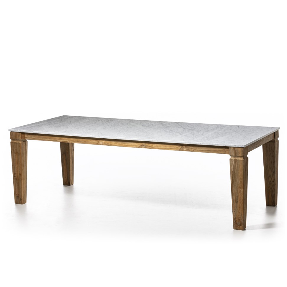 직사각 테이블, 에코티크 레그, 20mm 화이트 카라라 마블 탑,