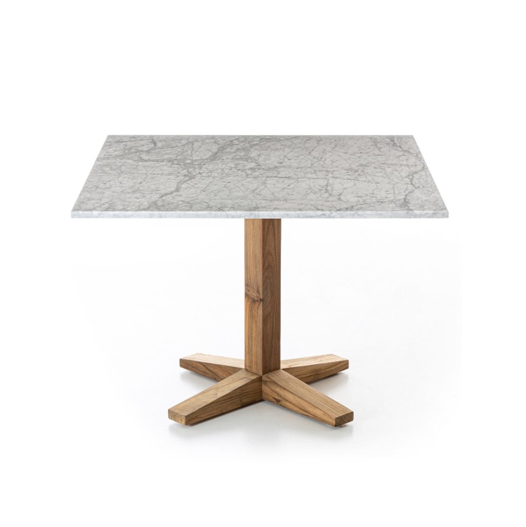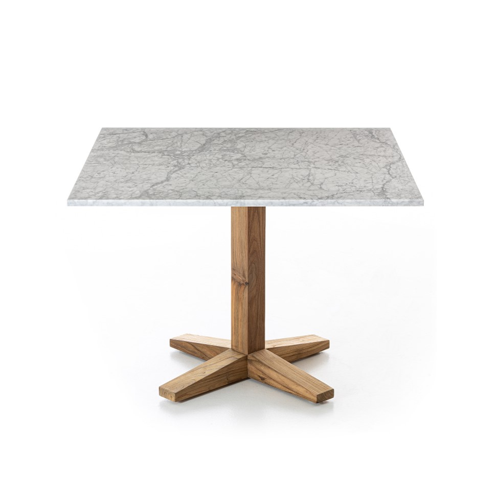 정사각 또는 라운드 테이블, 에코티크 레그, 20mm 화이트 카라라 마블 탑,