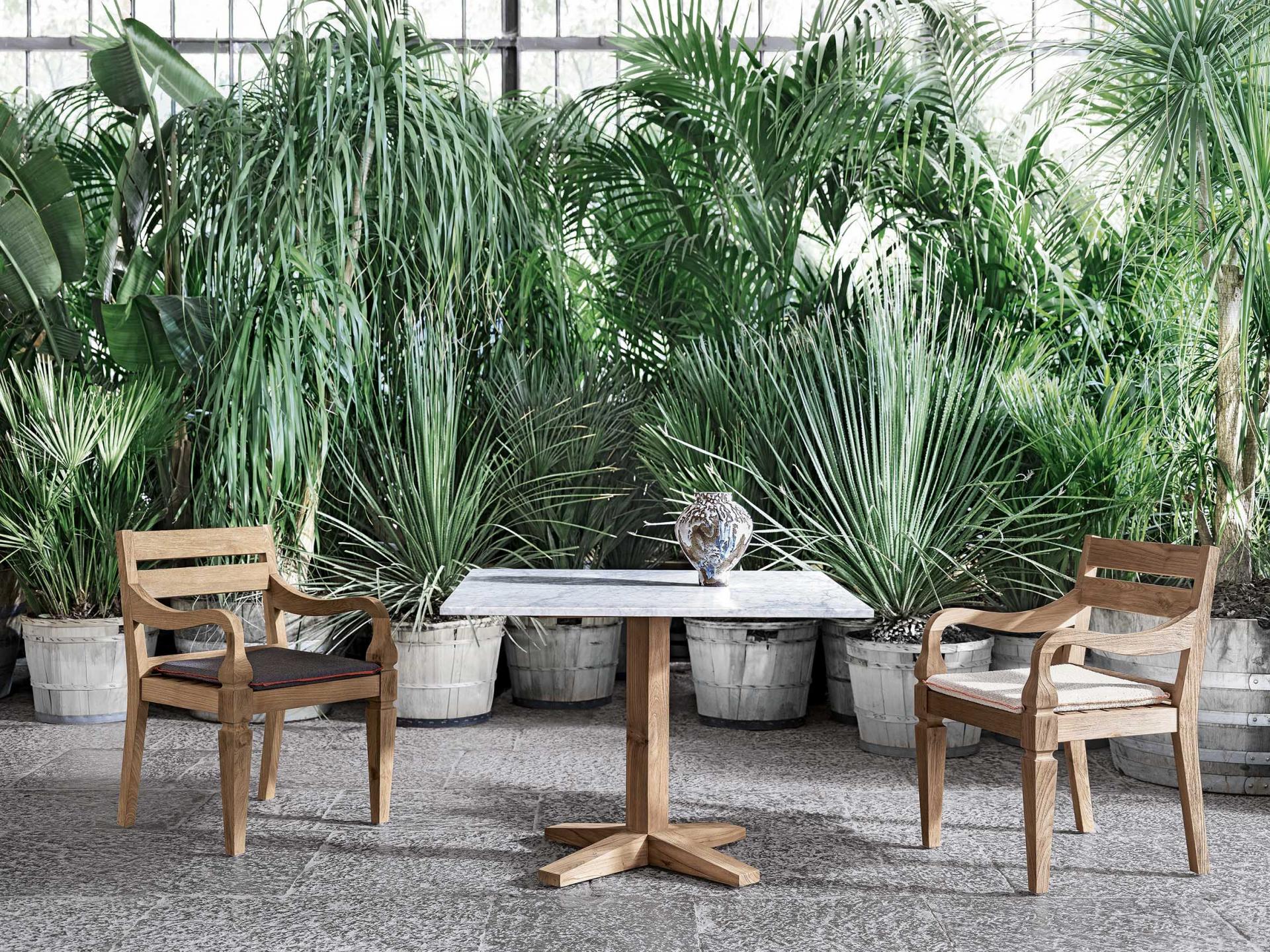 정사각 또는 라운드 테이블, 에코티크 레그, 20mm 화이트 카라라 마블 탑,