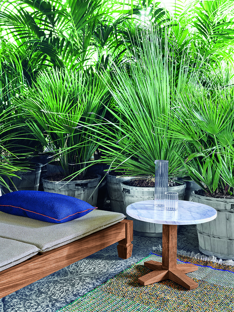 JEKO 컬렉션은 암체어, 소파, 캐노피, 썬베드, 다이닝테이블 및 사이드테이블 등으로 구성되어 있습니다.