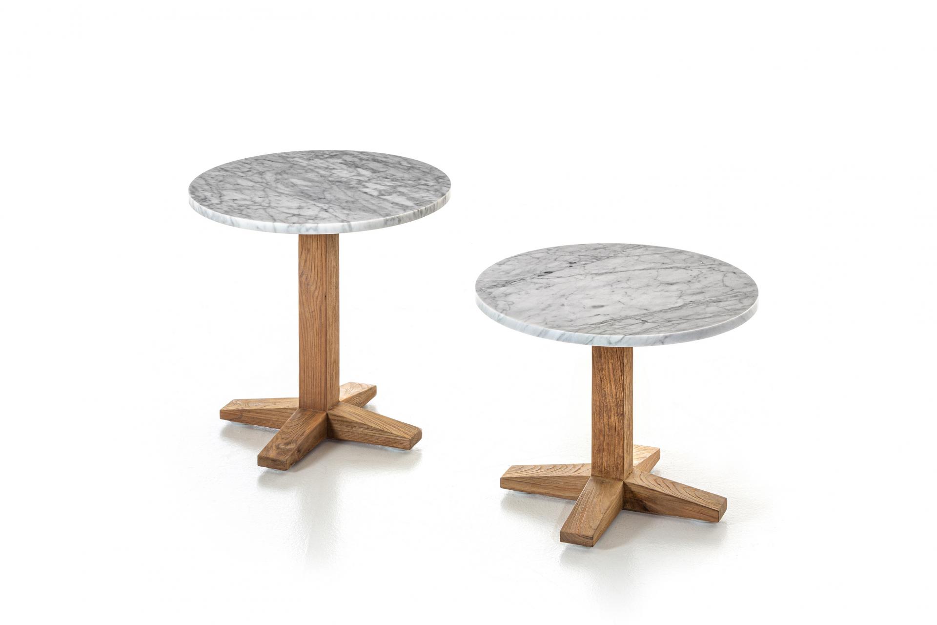 라운드 사이드테이블, 에코티크 레그, 20mm 화이트 카라라 마블 탑,