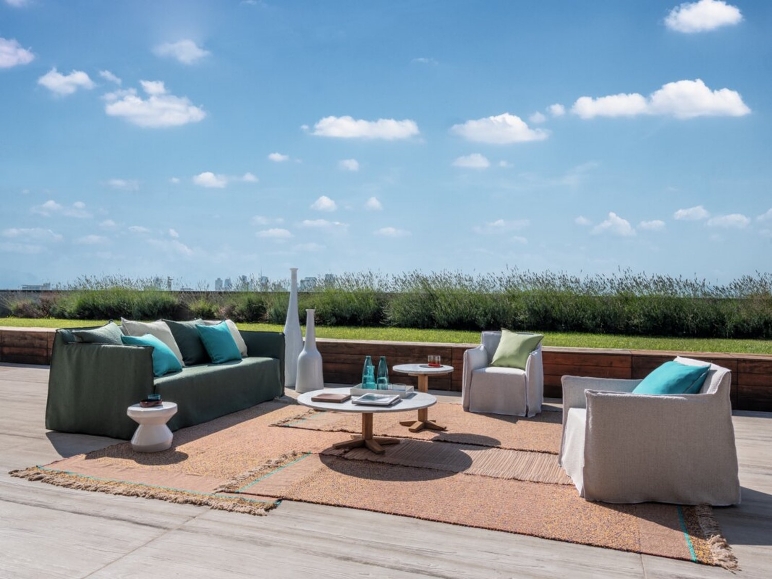 JEKO 컬렉션은 암체어, 소파, 캐노피, 썬베드, 다이닝테이블 및 사이드테이블 등으로 구성되어 있습니다.