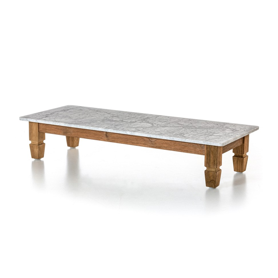 라운드 커테이블, 에코티크 레그, 20mm 화이트 카라라 마블 탑,