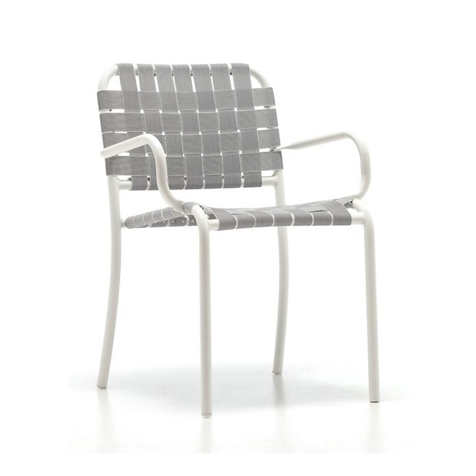 Dining armchair, stackable tubular aluminium frame painted embossed,