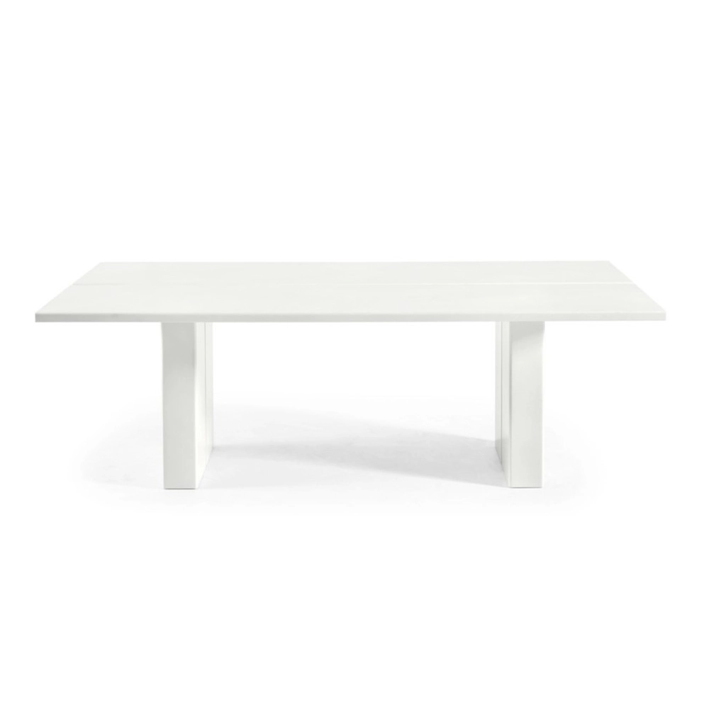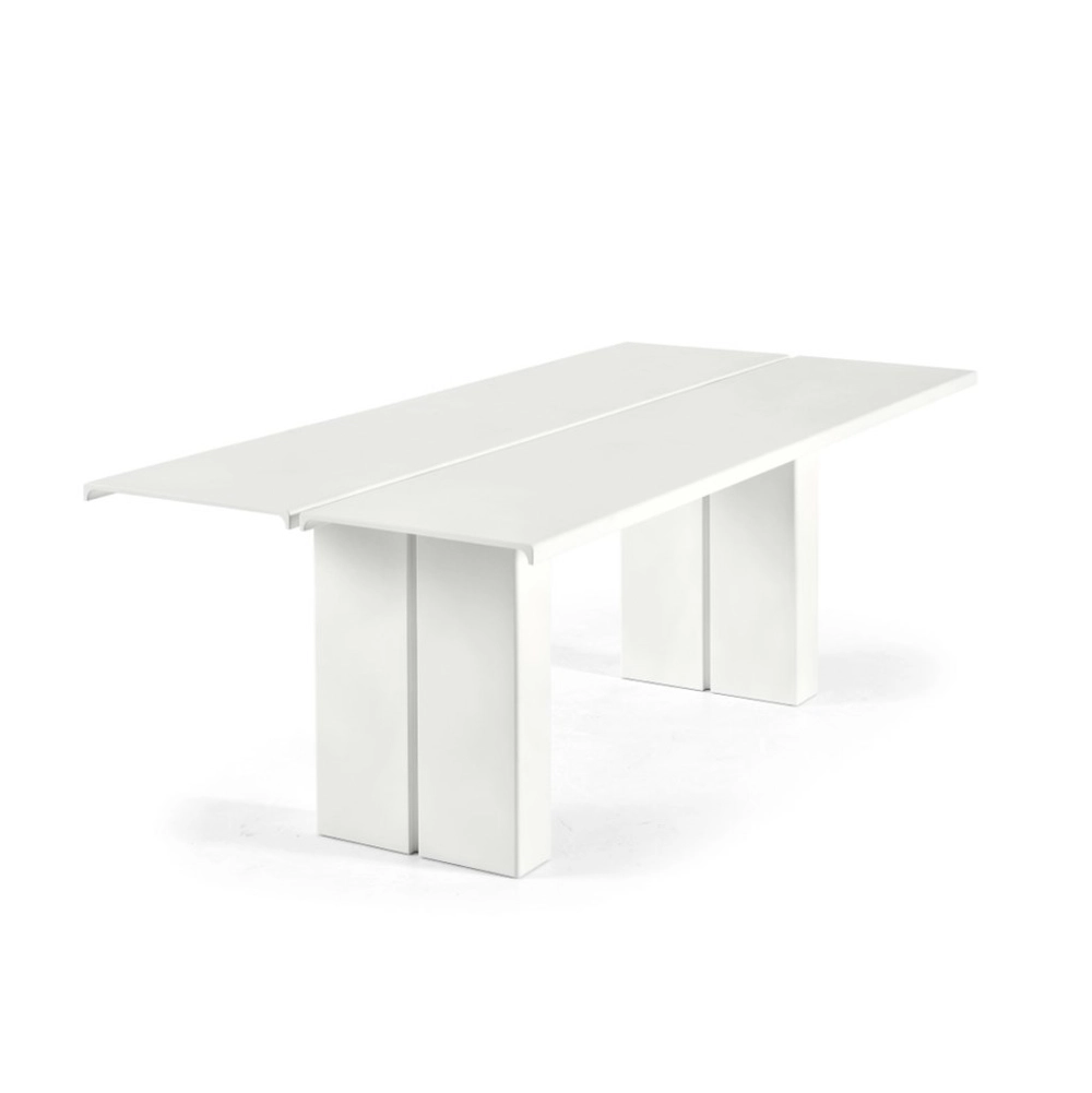 On one hand, a proposal of rectangular dining tables in two sizes that combine geometric elements with different thicknesses,