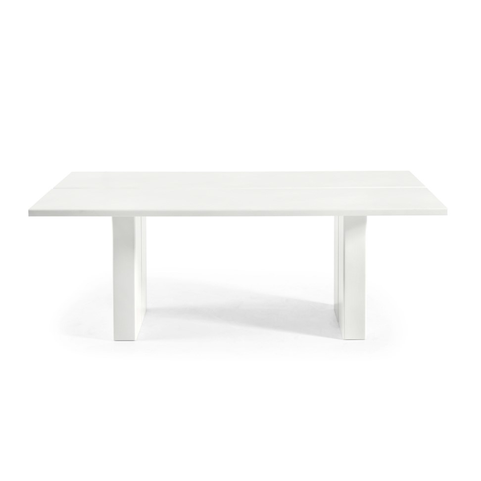 On one hand, a proposal of rectangular dining tables in two sizes that combine geometric elements with different thicknesses,
