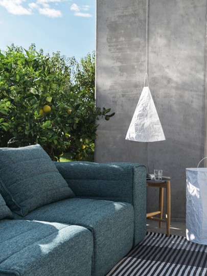 Rechargeable suspension LED lamp, Tyvek® lampshade, painted stainless