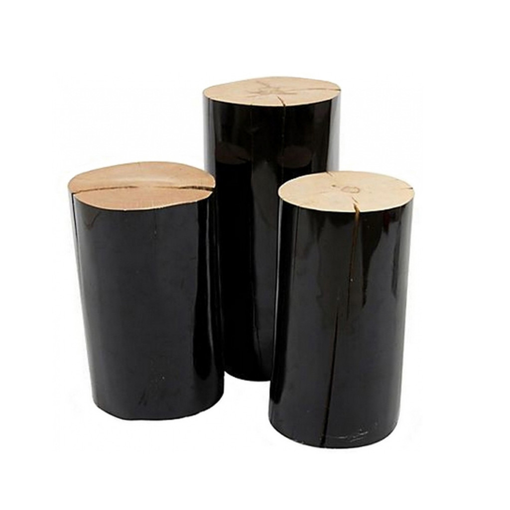 비치 우드 원목 트렁크 스툴 겸 사이드테이블, 글로시 블랙 또는 화이트 라커 마감.