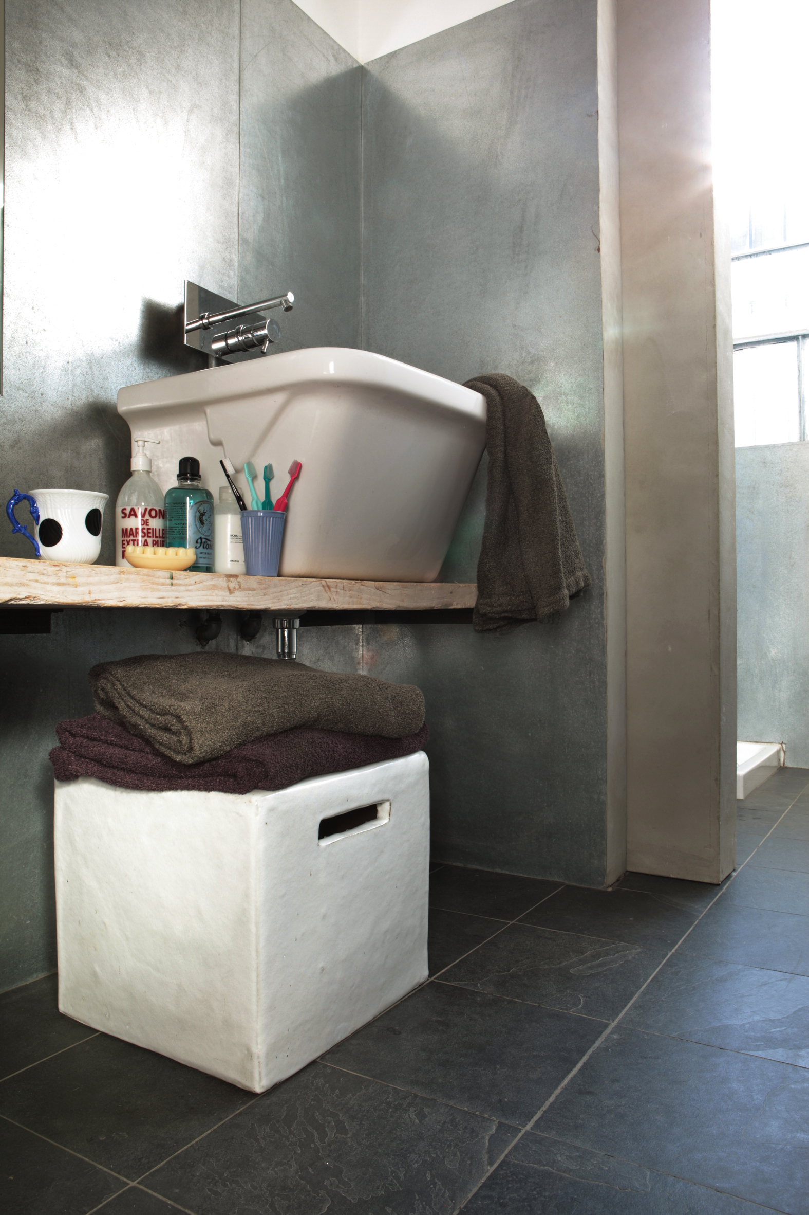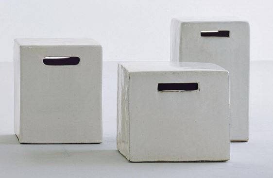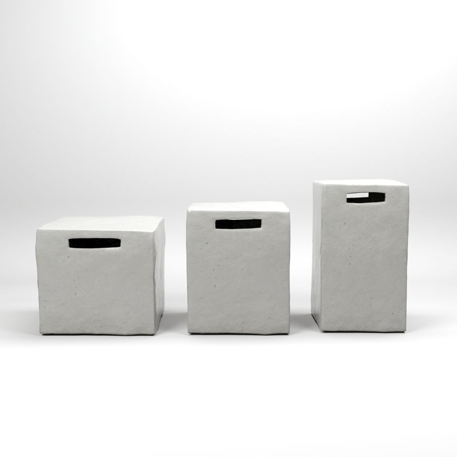 사각 사이드테이블 겸 오토만, GFRC 콘크리트 소재의 핸드메이드 질감이 돋보이는 사이드테이블/오토만.
