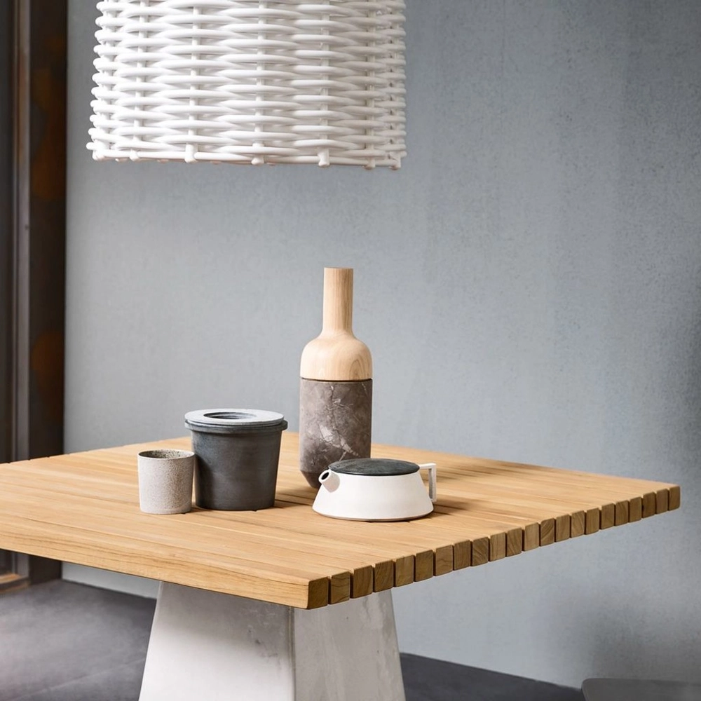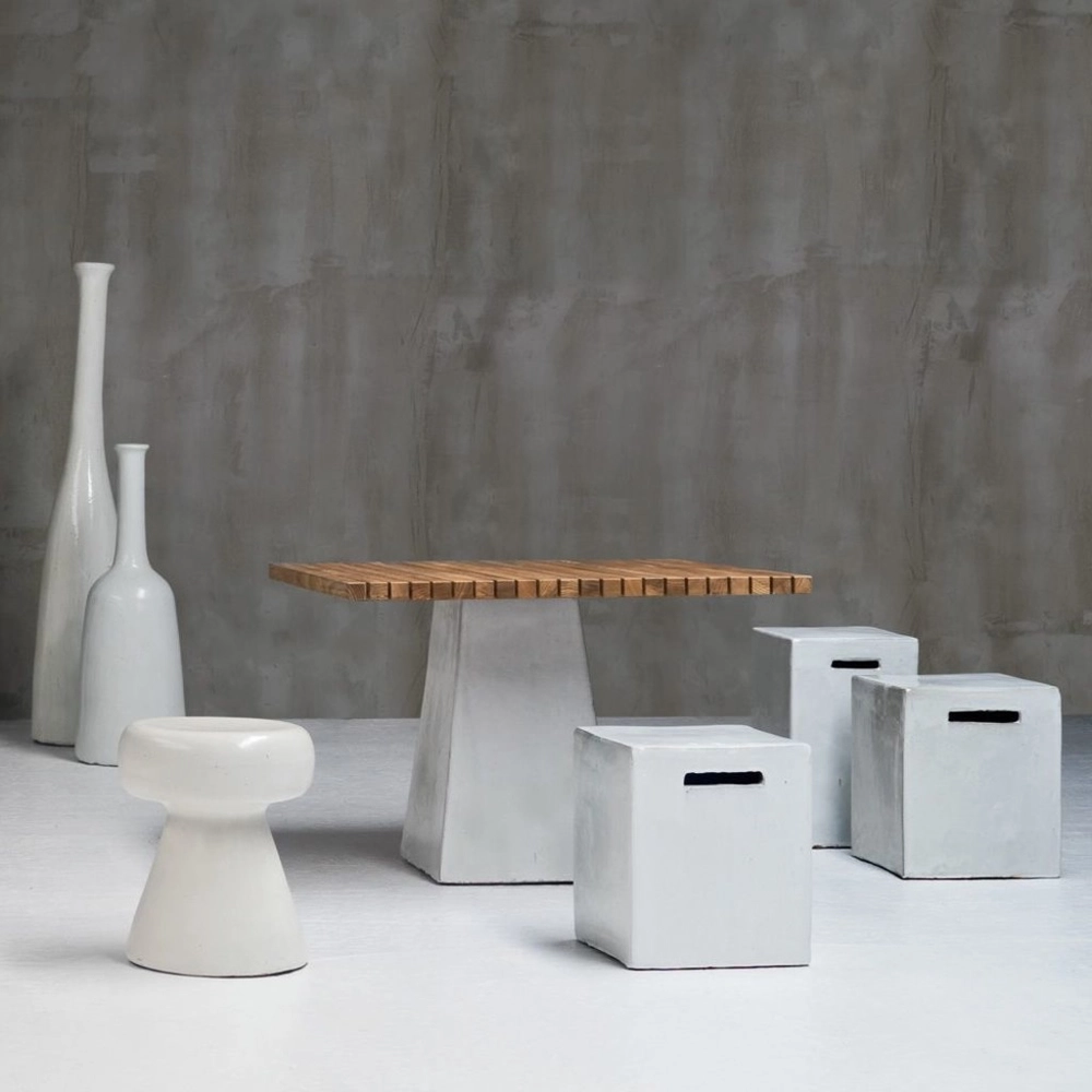 인도어 아웃도어 겸용 정사각테이블, 핸드메이드 화이트 세라믹 베이스,